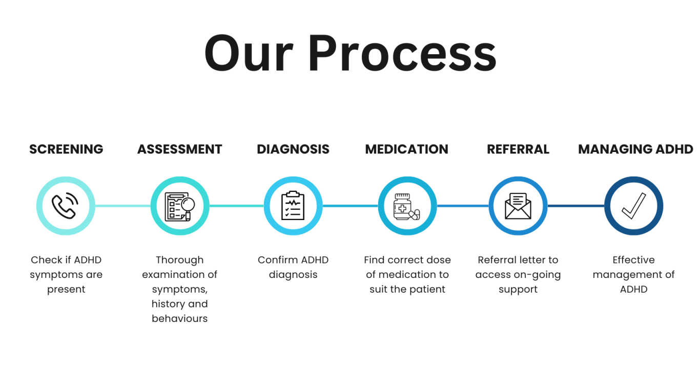 We offer screenings to ensure an ADHD assessment is needed, before completing the full assessment and / or a referrals to other services